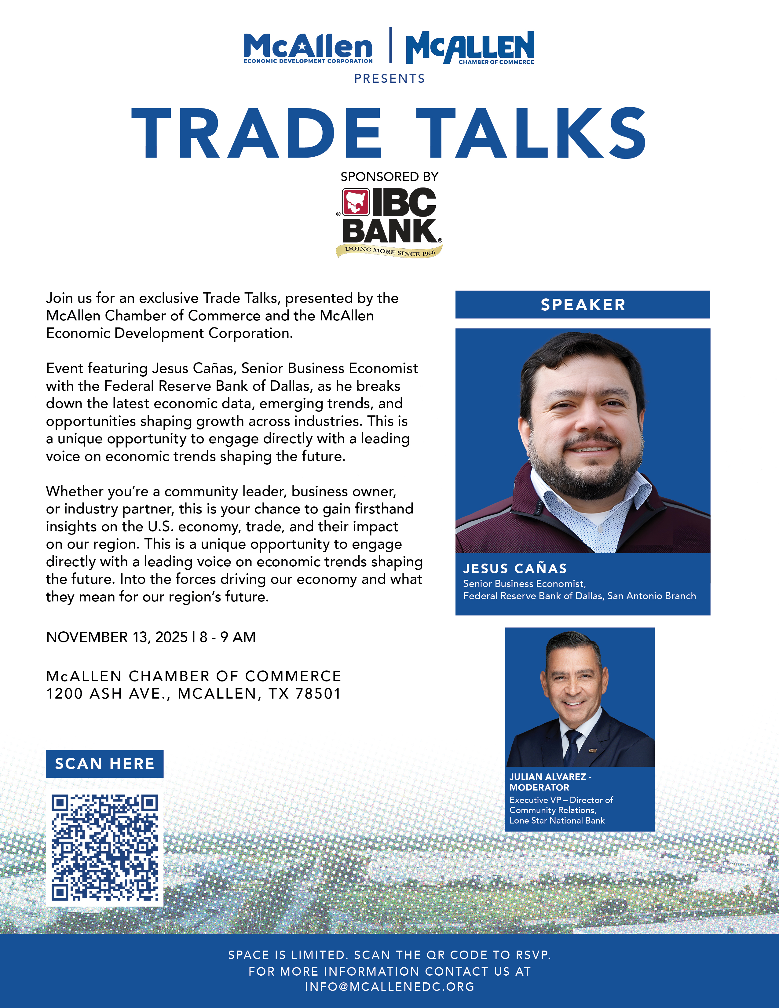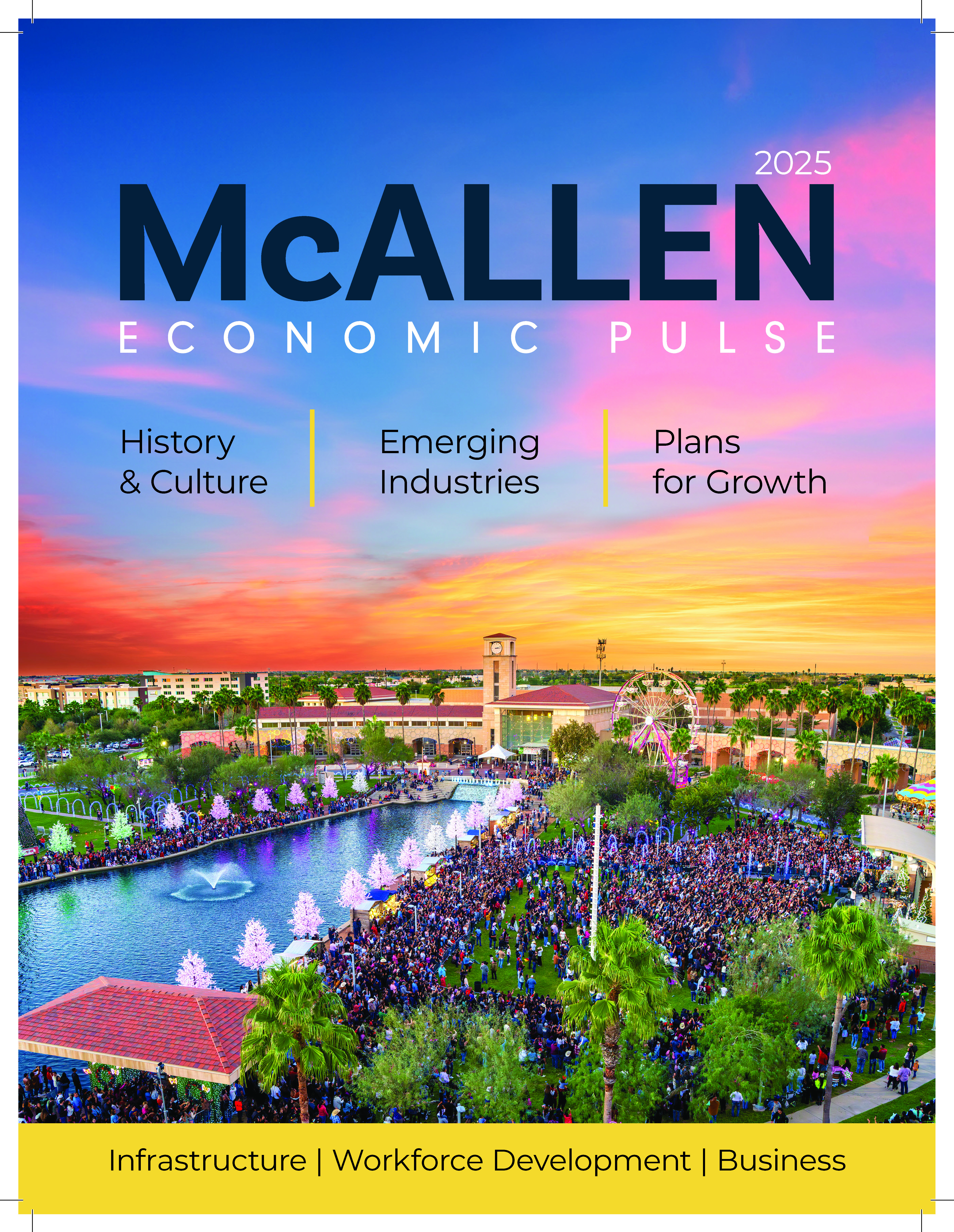 With an international metro population of 2,400,000, McAllen sits at the center of North America’s population growth corridor. McAllen serves as a healthy advanced manufacturing community- with over 145,000 employees, a booming retail trade of over $17.5 billion per year, and the number one port-of-entry for a continuing tradition of agricultural products. McAllen is also home to a burgeoning medical industry supported by the new UTRGV School of Medicine and a year round tourism trade- bolstered by winter Texans - all which coalesce to form a strong economic base.